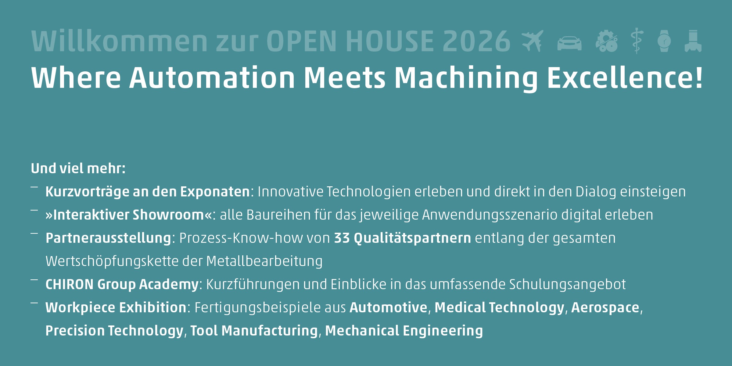 Vom 21. bis 23. April 2026 öffnen wir unsere Türen für Sie! Erleben Sie drei spannende Tage voller innovativer Fertigungsprozesse und wegweisender Lösungen.