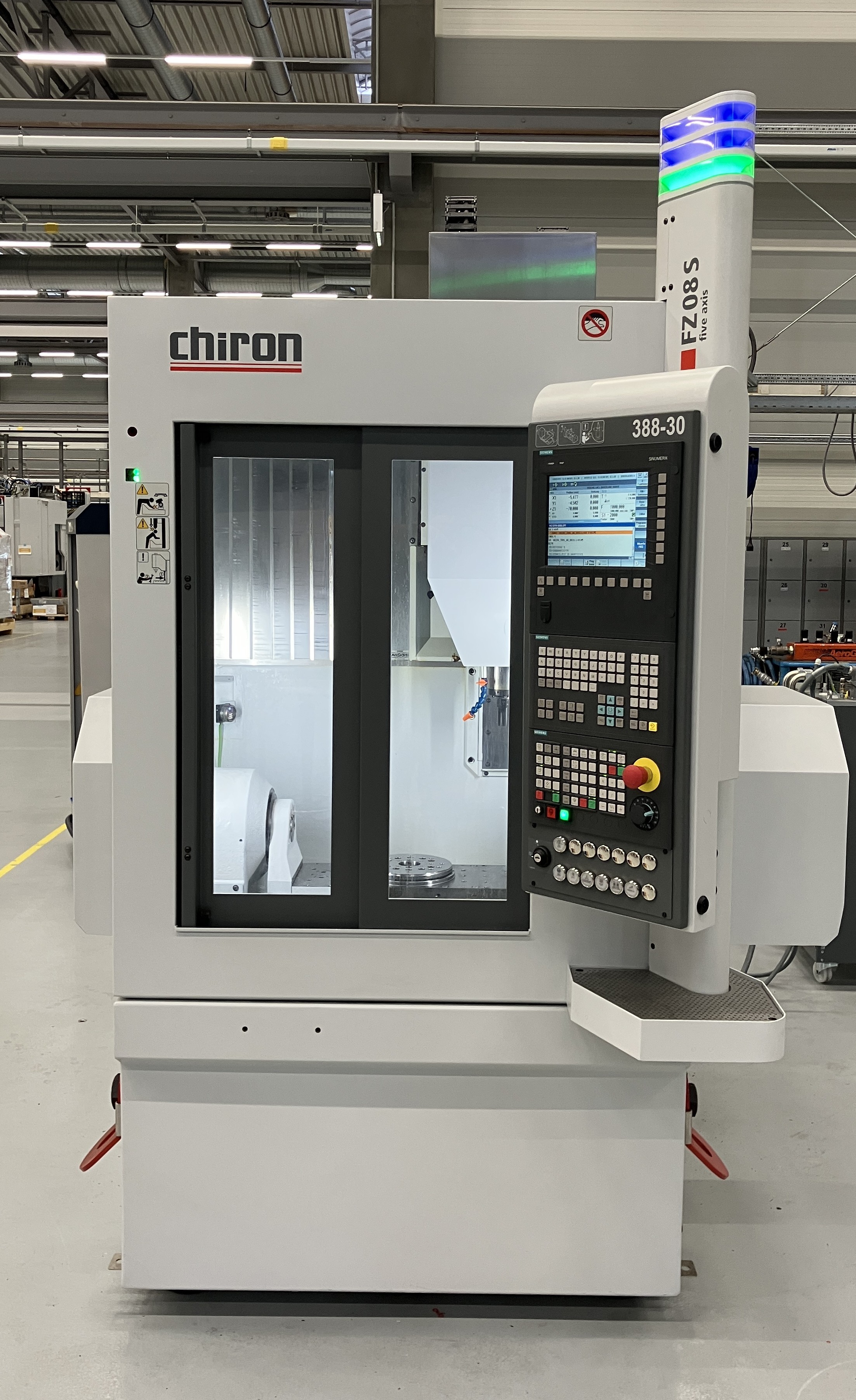 Compact and flexible precision machining center with fixed table and automatic tool change with the pick-up-method. Ample space for devices or NC rotary table installations for multisided machining.